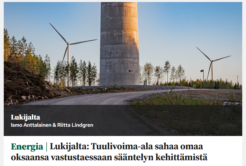 Tuulivoima-kansalaisyhdistys ry:n kirjoitus Kauppalehdessä 1.10.2025: Tuulivoima-ala sahaa omaa oksaansa vastustaessaan sääntelyn kehittämistä.